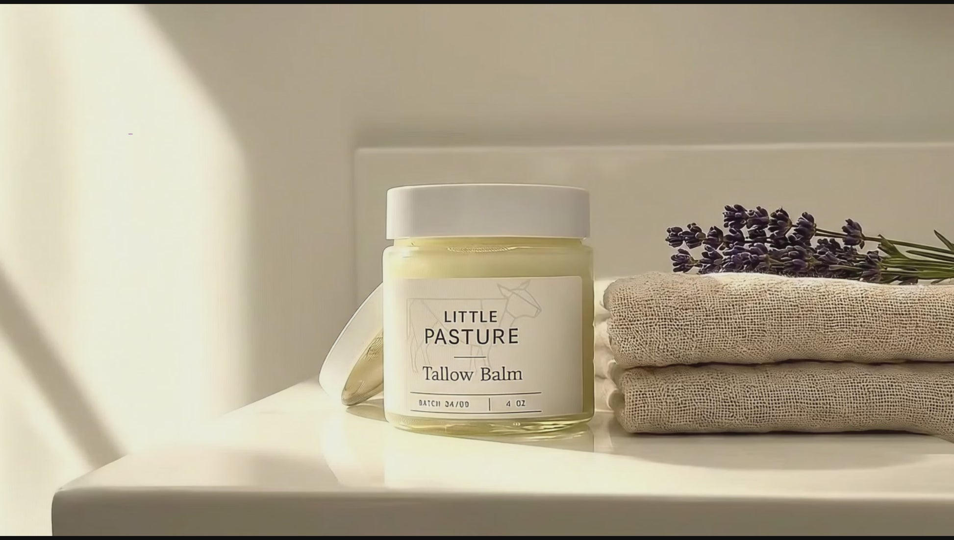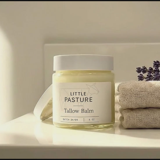 Little Pasture's 100% grass-fed beef Tallow Balm Moisturizer is infused with beeswax and Manuka honey.